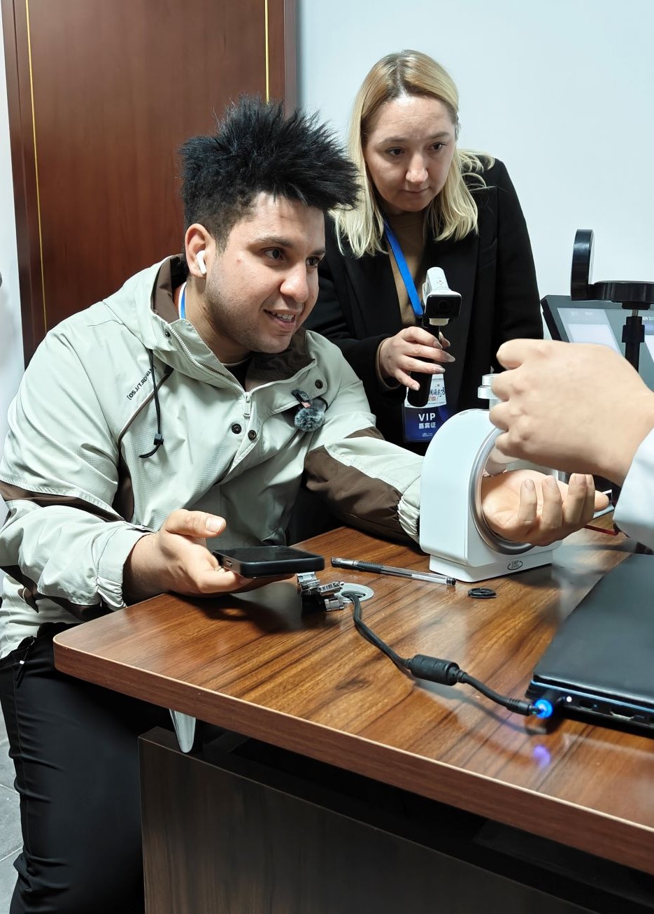 传统与科技的碰撞,为黄山体验注入了全新活力。网红博主们在屯溪三江口历史文化街区的新安医学康养中心,既尝试了把脉问诊、针灸、按摩等传统中医手段,感受经络调理的舒适感,又借助 AI 诊疗设备完成了健康检测,快速获取了个性化健康建议。埃及网红博主感叹,没想到中医的“望闻问切”能和AI结合得这么丝滑。他认为,这种方式既守住了传统中医的韵味,又靠科技拉满了效率,“传统医学的深厚底蕴与AI的创新活力碰撞,这绝对是未来康养的发展方向”。